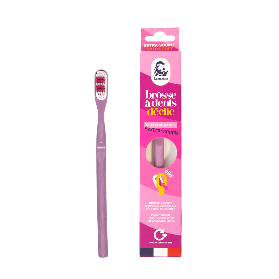 Une brosse à dents rechargeable et éco-conçue 100 % personnalisable avec 3 souplesses de poils pour respecter vos gencives et 5 couleurs. Même les gencives les plus sensibles ont leur brosse à dents écologique !