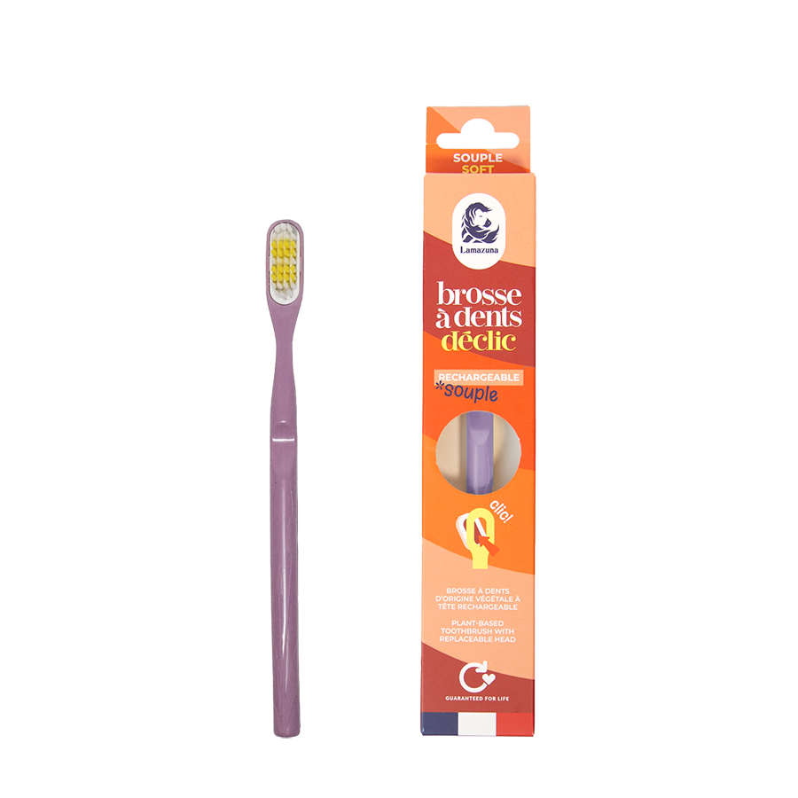 Une brosse à dents rechargeable et éco-conçue 100 % personnalisable avec 3 souplesses de poils pour respecter vos gencives et 5 couleurs. Même les gencives les plus sensibles ont leur brosse à dents écologique !