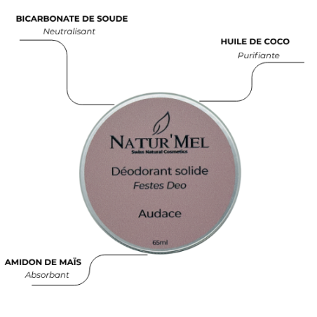 Le déodorant solide « Audace » t’offre une protection naturelle contre les odeurs, tout au long de la journée.