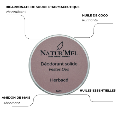 Le déodorant solide « Herbacé » te protège naturellement contre les odeurs tout au long de la journée, grâce à une synergie d’huiles essentielles aux notes fraîches et végétales.