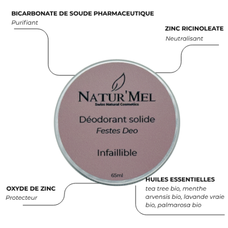➡️ Zinc ricinoléate & oxyde de zinc : renforcent l’action désodorisante