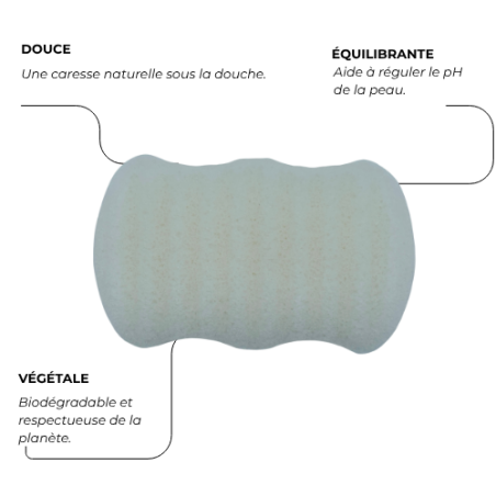 Cette éponge végétale est fabriquée à partir de racine de konjac, un tubercule originaire d’Asie, apprécié depuis longtemps pour ses fibres douces.