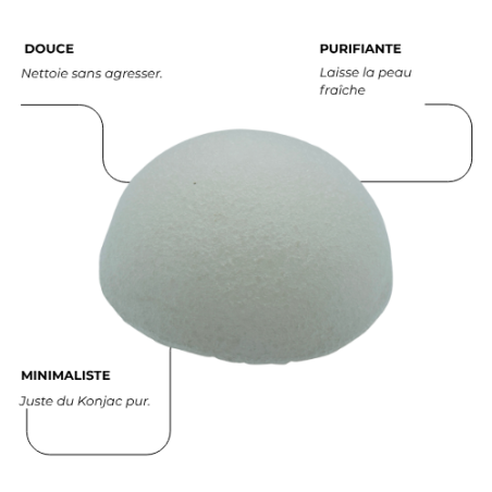 Cette éponge naturelle peut s’utiliser seule, ou avec un savon doux, pour accompagner le nettoyage du visage au quotidien.