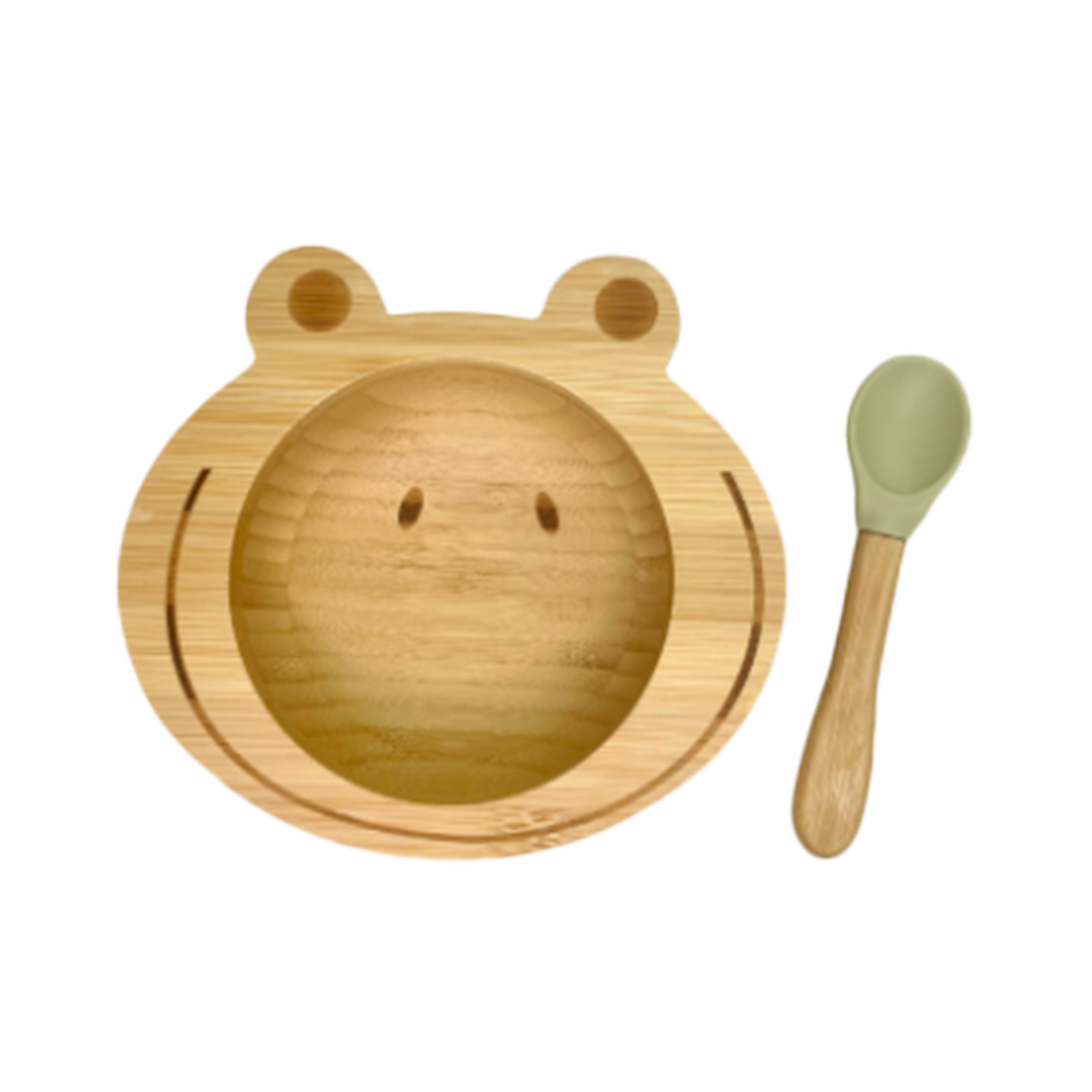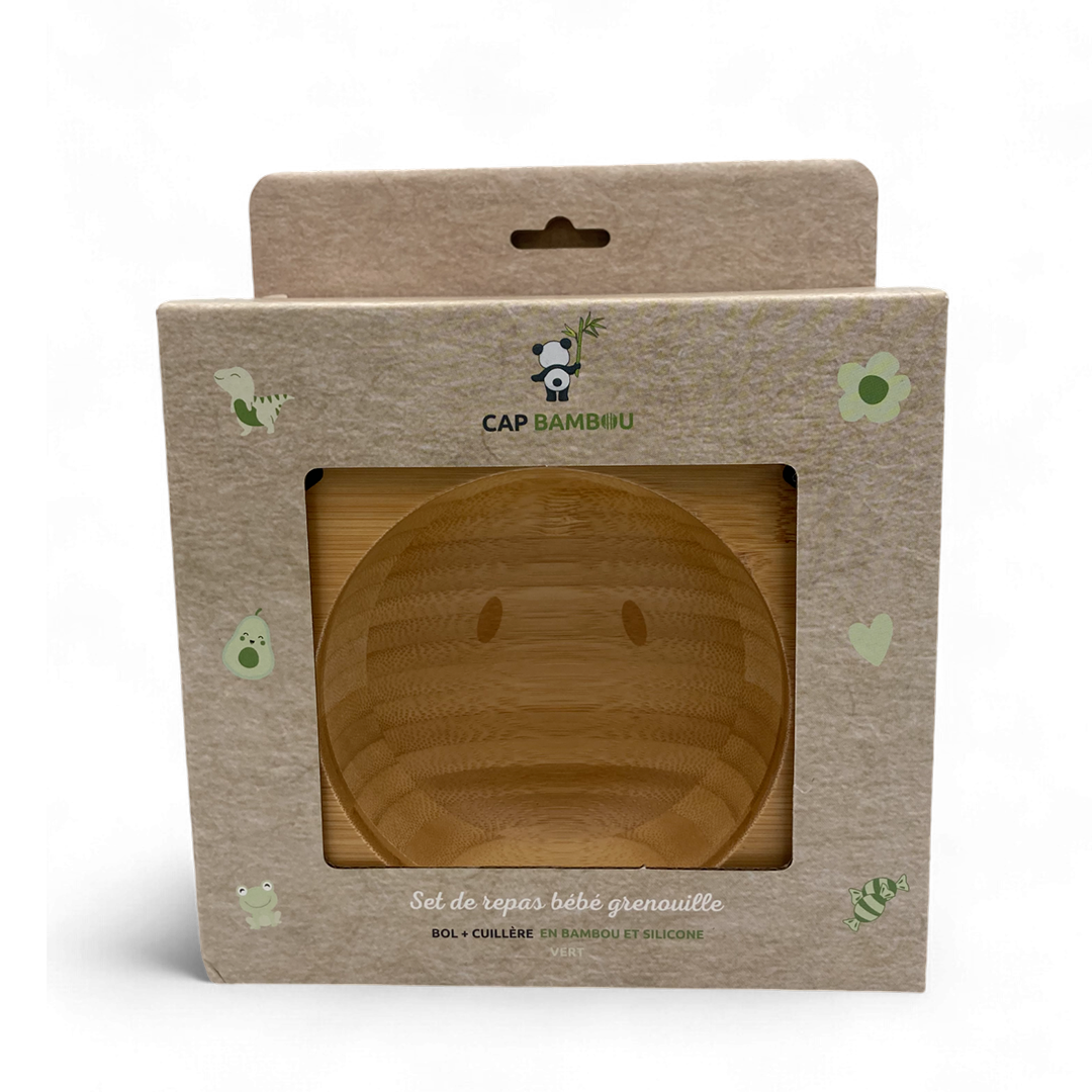 Offrez à votre bébé une expérience de repas ludique et respectueuse de l’environnement avec notre set de repas pour bébés grenouille en bambou !