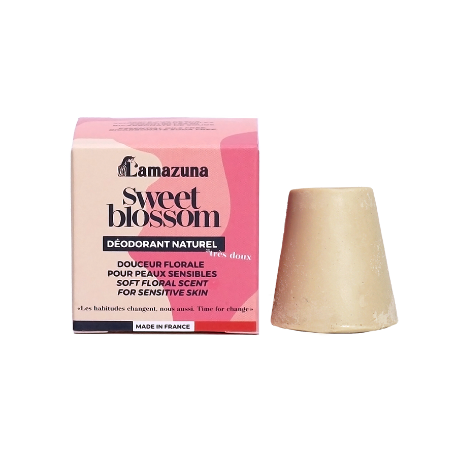 Sans huiles essentielles ni bicarbonate de soude, votre peau sensible a enfin trouvé son allié anti-odeurs et zéro déchet du quotidien. Le zinc ricinoléate et la terre de diatomée neutralisent très efficacement les mauvaises odeurs sans empêcher le phénomène naturel et nécessaire de transpiration. Son parfum floral et sa texture crémeuse séduiront toutes les peaux sensibles. Et, comme toujours, objectif zéro déchet avec Lamazuna, pas de stick, pas de contenant trop lourd ou trop grand, juste notre fameux cône et son carton ajusté à ses dimensions ou, encore mieux, le cône en vrac ! Coulé et démoulé à la main dans l’arrière-pays niçois, testé sur peaux sensibles, c’est toute l’expérience de Lamazuna, pionnier du déodorant solide, que vous retrouvez dans cet allié anti-odeurs !