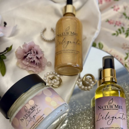 Révélez une peau sublimée et éclatante avec notre trio Pack « L’Elégante » : gommage, huile satinée et irisée pour une beauté raffinée et intemporelle